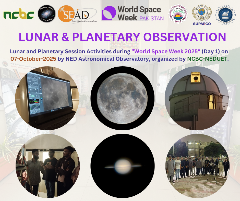 NCBC-NEDUET is organizing INTERNATIONAL OBSERVE THE MOON NIGHT 2023 on 23rd, October 2023. The event will held from 1730 PM to 1900 PM PKT.